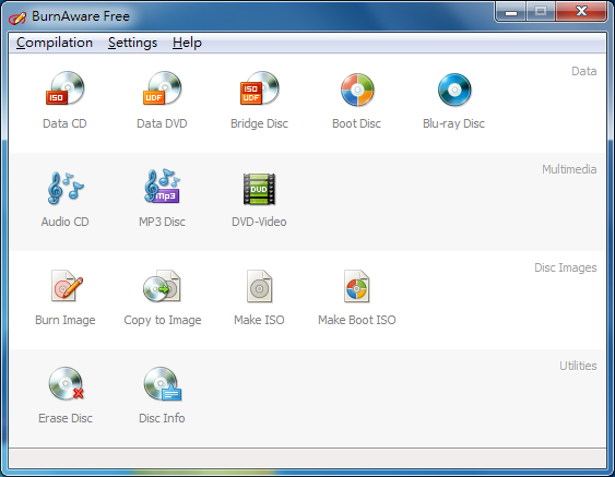 功能強大且支援藍光光碟的燒錄軟體 - BurnAware Free,可以將MP3燒錄成一般音樂光碟,製作開機光碟或產出ISO檔,將ISO、CUE檔燒錄成光碟,製作可開機光碟、ISO檔,抹除可覆寫式光碟,體積雖小但功能齊全。