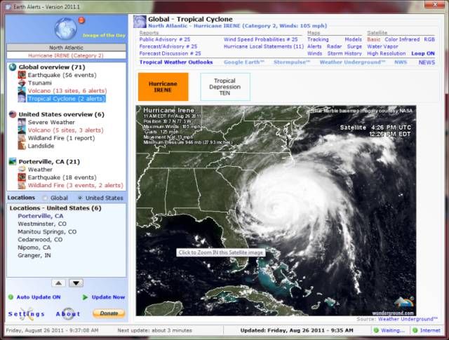 Earth Alerts使用各種各樣的國家氣象服務、美國地質調查局和史密森學會等組織提供的線上資源 (只是來舉幾例),以確定什麼樣的"全球"的活動目前派這個星球上。