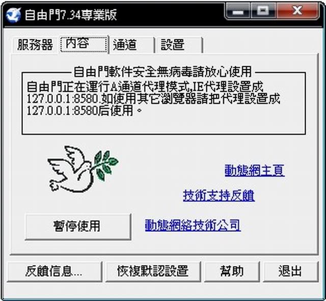 Freegate 自由門 7.37 免安裝專業版 - 大陸出差專用翻牆軟體