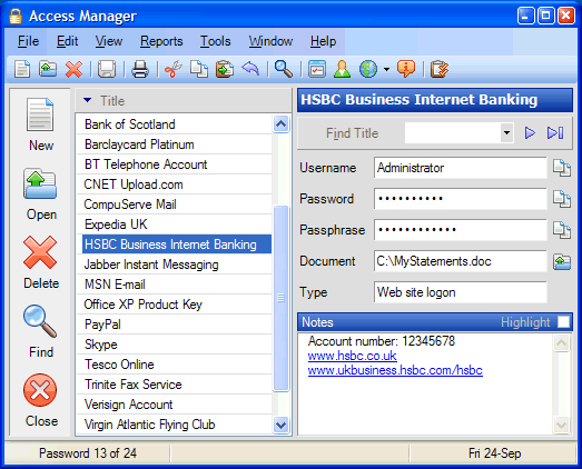 Access Manager是一個免費的軟件解決方案,使所有的在一個密碼,使用簡單列表。它提供了快速,方便,安全的密碼管理。 一個“主密碼”是所有需要訪問您的所有密碼和個人信息。