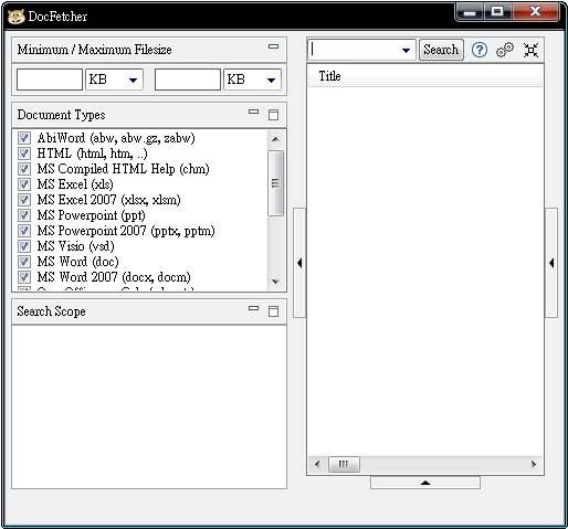 搜尋內含特定文字的檔案–DocFetcher,支援DOC、PDF及OpenOffice的檔案內文搜尋,假設:要在一堆文件中搜尋哪些文件的內容含有「自由空間」兩個字,就可以利用這個軟體來達成。