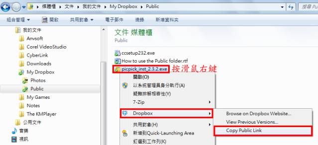 Dropbox資料夾中的檔案隨後就可以與其他Dropbox使用者分享,或透過網頁來獲取。