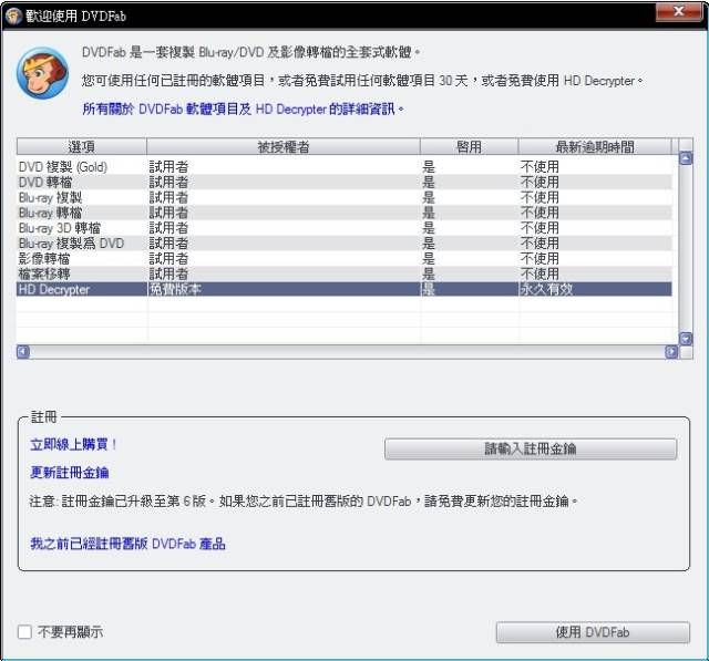 注意:部分讀者反應,安裝後變成亂碼,解決方式:請將「C:\Program Files\DVDFab HD Decrypter\Language」下面的3個「*_CHS.lng」檔(簡中語系)刪除,並重新啟動。