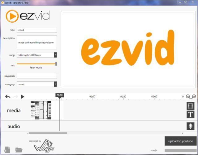 下載回來的 Ezvid 包含 009 Sound System 和 Aalborg Soundtracks 做出來的音樂,以協助使用者製作及上傳 YouTube 影片,保證不會有版權上的問題。使用者可利用電腦麥克風隨著影片錄製自己的聲音。