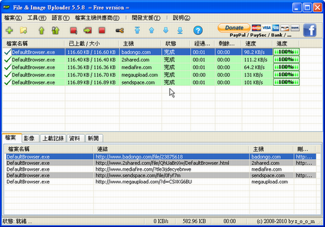 免費空間上傳工具 - File and Image Uploader,可以將你想分享的檔案一次上傳到多