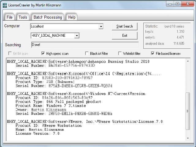 LicenseCrawler 1.25.0.298 找出電腦中所有程式之序號和授權碼的工具