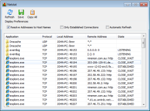 ◎ 包括網絡信息及先進的netstat命令顯示應用程序使用您的Internet連接測試工具。
