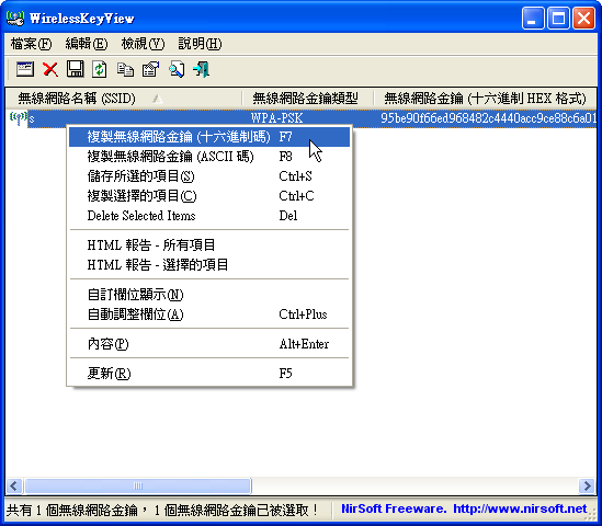 WirelessKeyView 1.60 免安裝中文版 - 破解無線網路連線密碼
